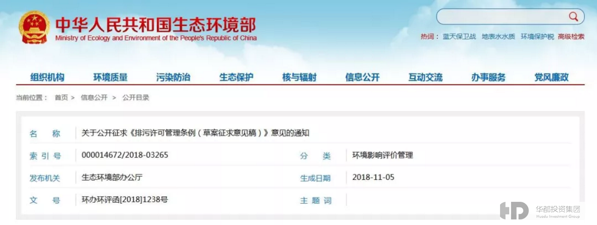 生態(tài)環(huán)境部發(fā)布《排污許可管理?xiàng)l例(草案征求意見稿)》